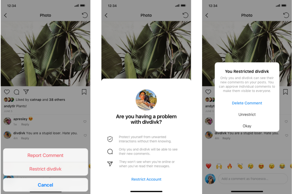 La actualización de Instagram disponible hoy extiende a todos los usuarios una nueva función llamada Restringir que está diseñada para combatir el ciberacoso y los comentarios ofensivos.