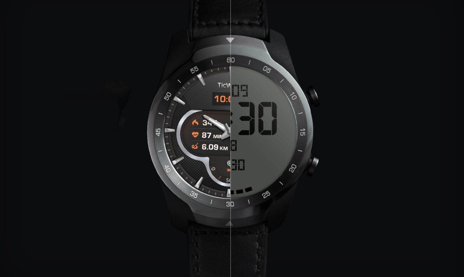 El TicWatch Pro dispone de una pantalla de cristal líquido LCD de la ‘vieja escuela’ delante de una pantalla OLED de alta resolución