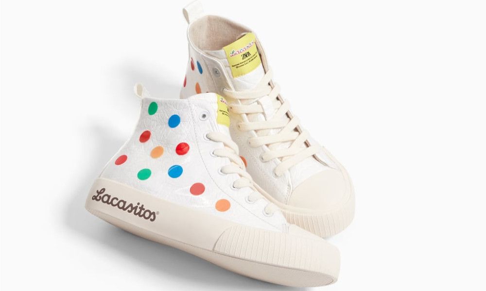 El buque insignia de Inditex colabora con Lacasa para poner en el mercado unas zapatillas deportivas decoradas 'con Lacasitos' por 27,95 euros