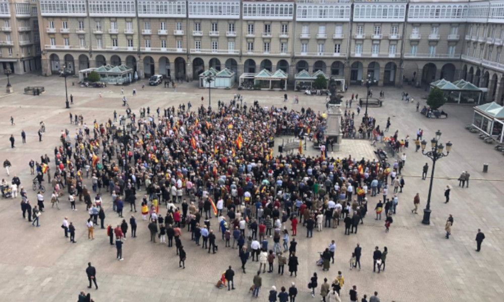 La Plaza de María Pita en A Coruña ha protagonizado este mediodía un acto en defensa de la unidad de España al que ha asistido Alberto Núñez Feijóo