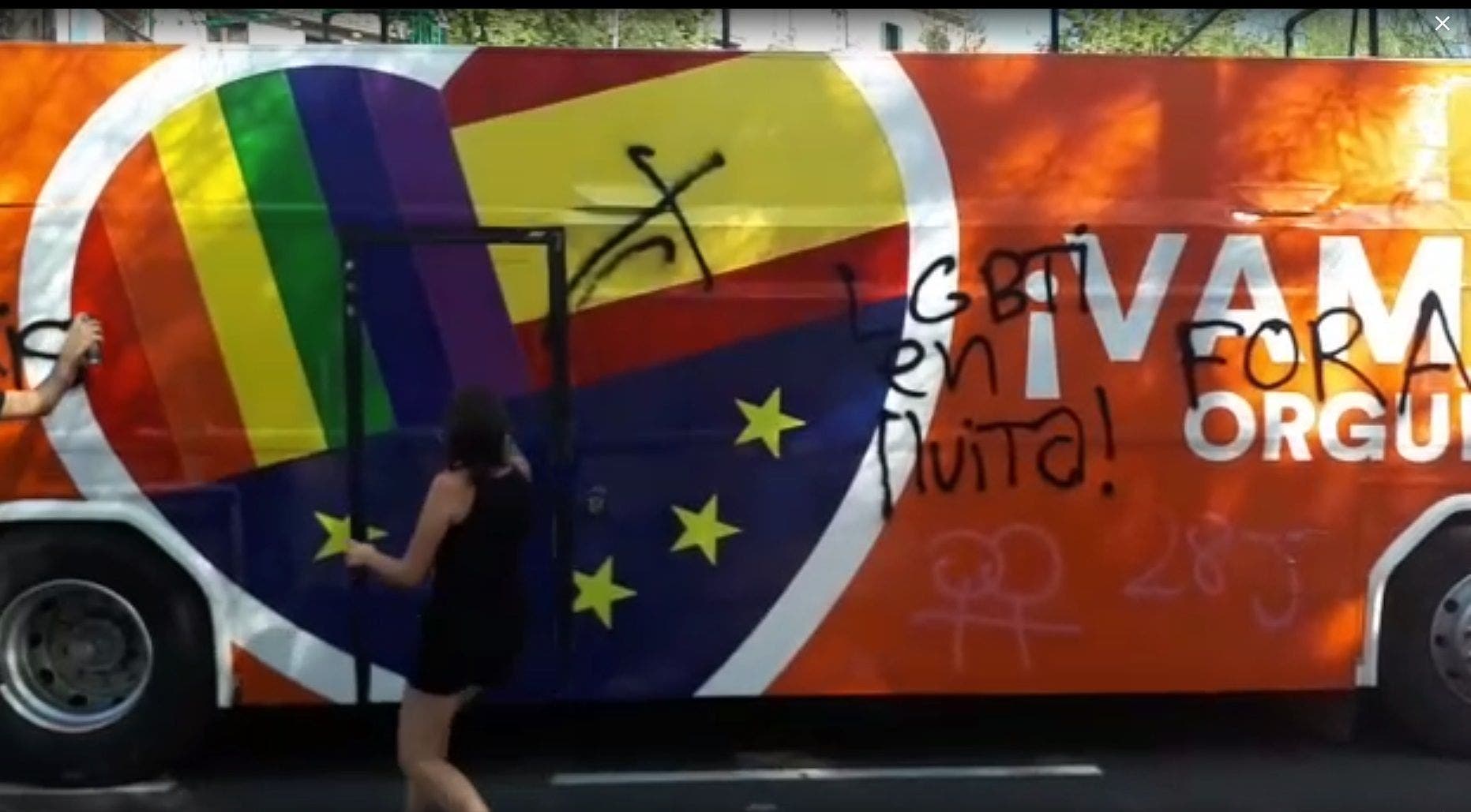 Vídeo: pintan y expulsan el bus de Cs en el Orgullo de Barcelona