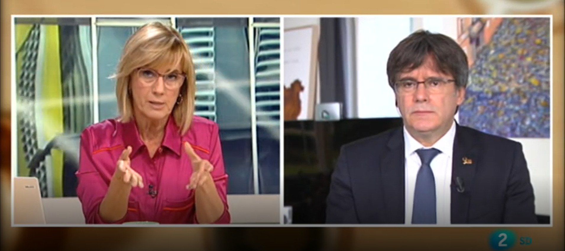 Gemma Nierga entrevista a Carles Puigdemont en un programa emitido simultaneamente en La 2 y en Ràdio 4 en Cataluña
