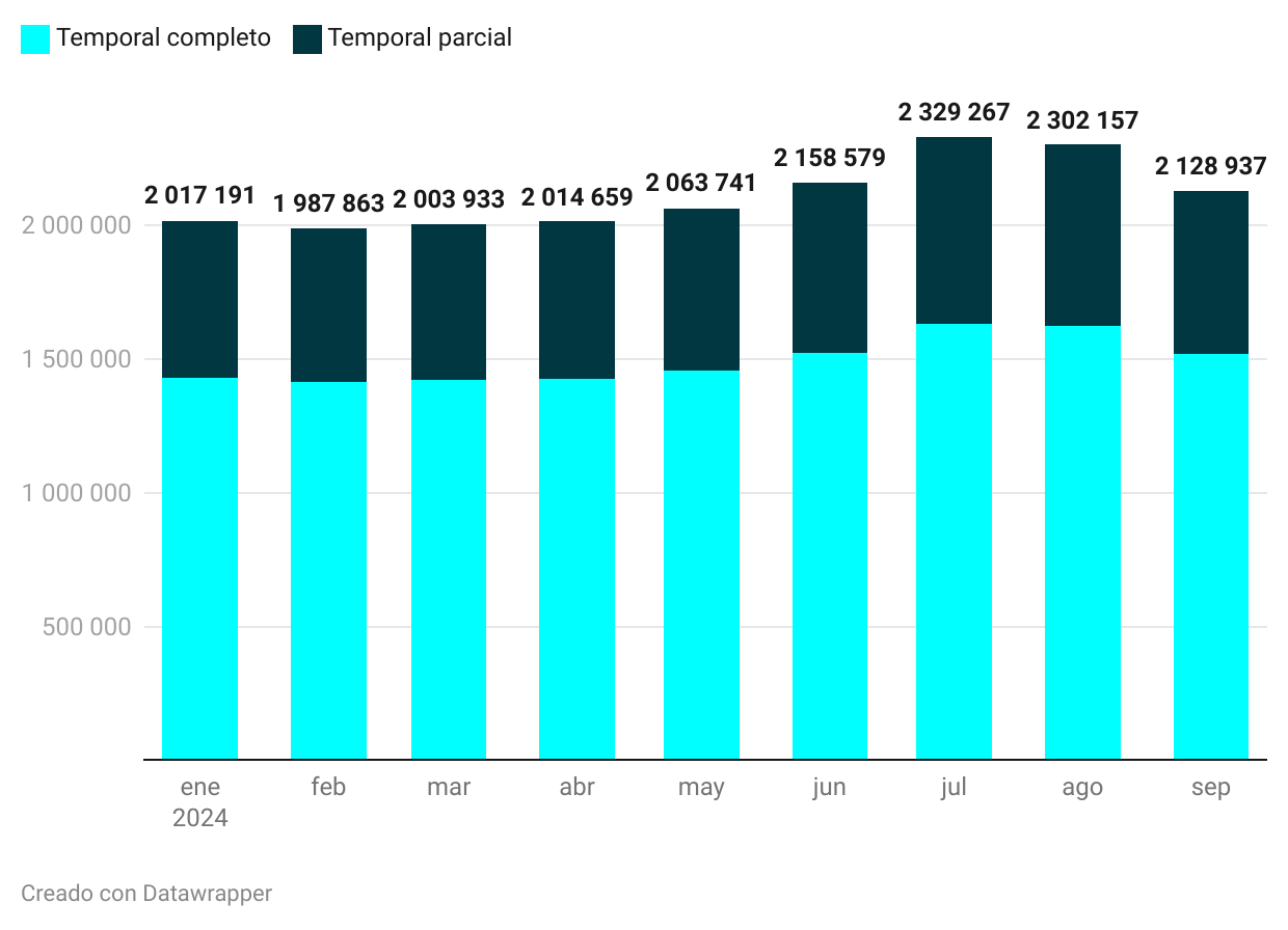 La vuelta del verano ha arrojado unas cifras de empleo más frías de lo habitual para septiembre, que solo se compensan por la estacionalidad del campo y la educación