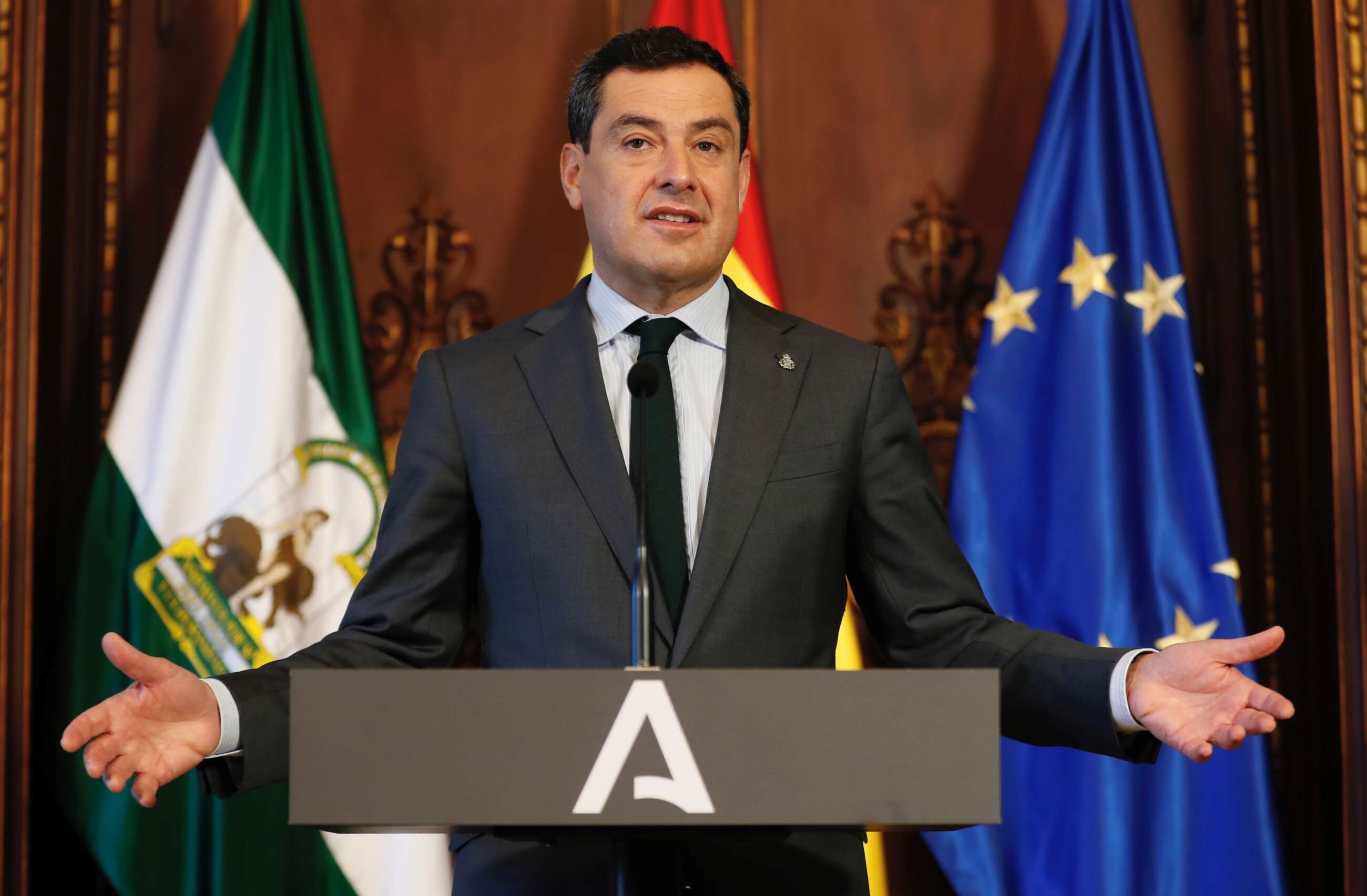 El presidente de la Junta de Andalucía, Juanma Moreno, responsabiliza la derrota del PSOE el 18-F a su vinculación con los independentistas