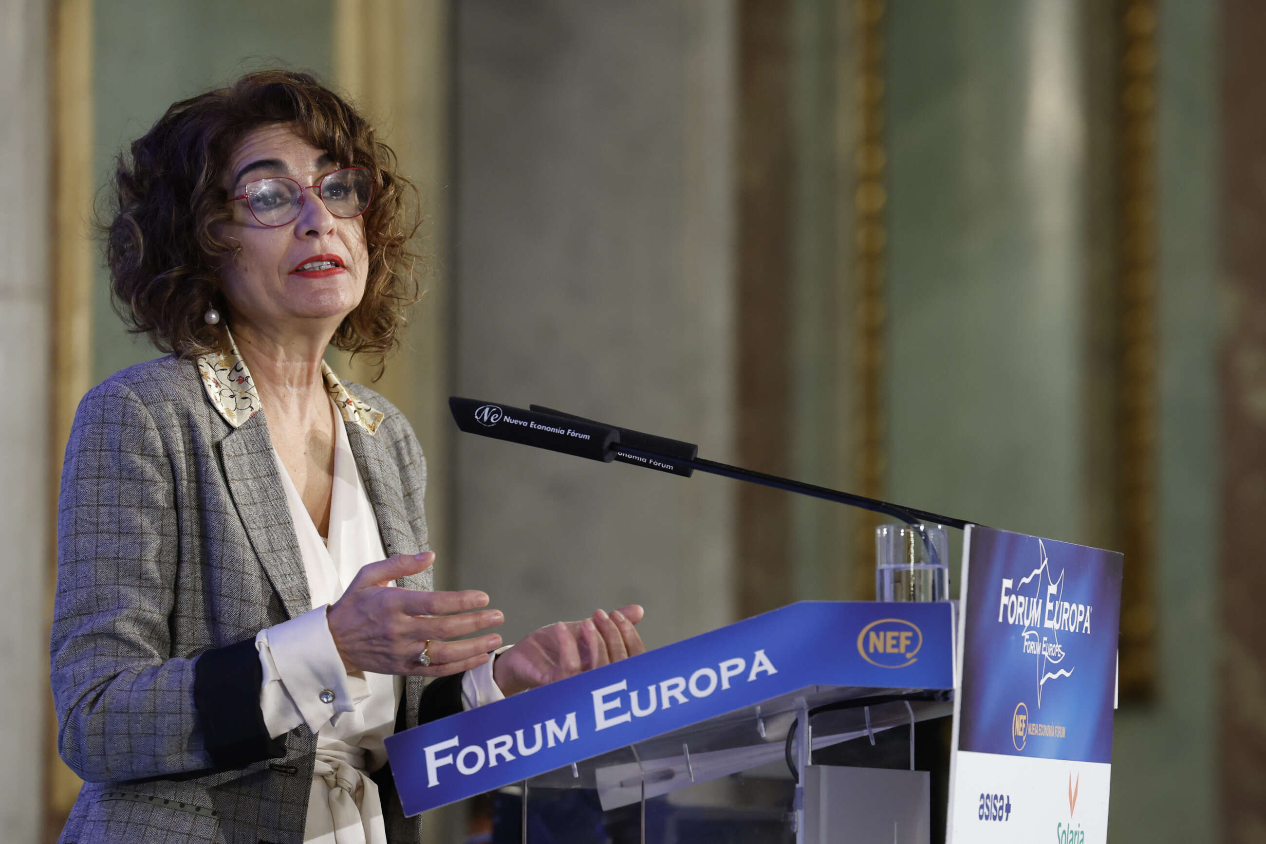 La vicepresidenta y ministra de Hacienda, María Jesús Montero, pide "generosidad" a la UE mientras lamenta el rechazo de Podemos a la reforma del subsidio al desempleo