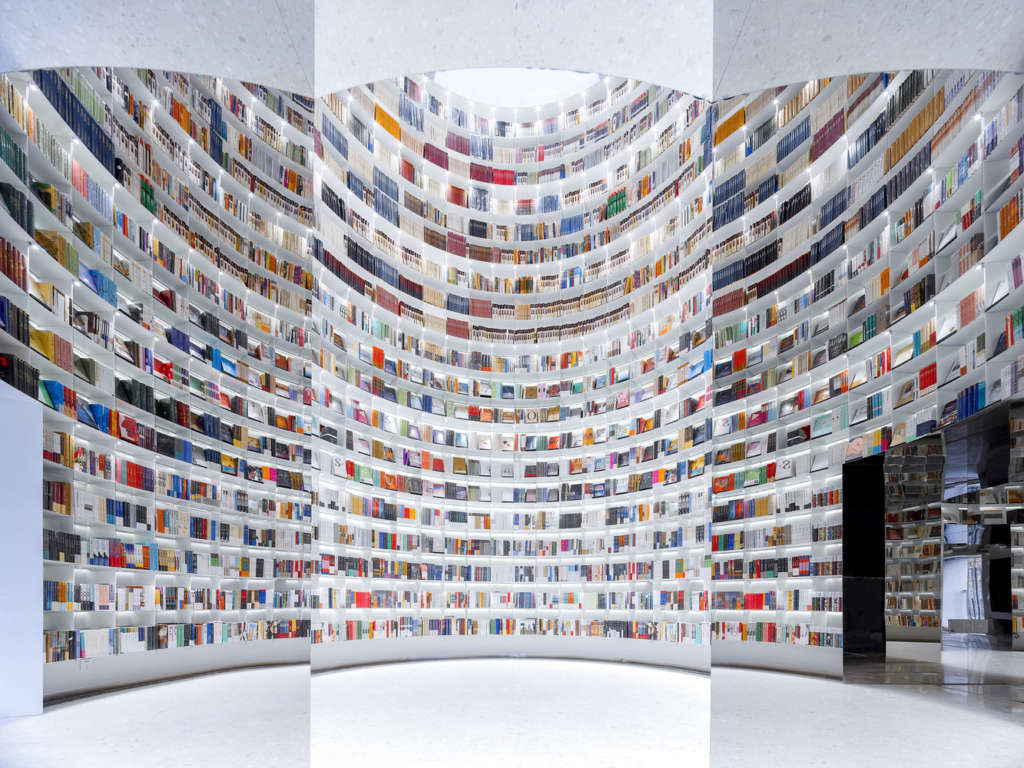 Los silos usados en una antigua planta de cemento en las afueras de Nanjing se convierten en una fantástica librería, donde las gigantescas estructuras se revisten de libros que, gracias a los juegos visuales de unos espejos, parecen llegar hasta el infinito.