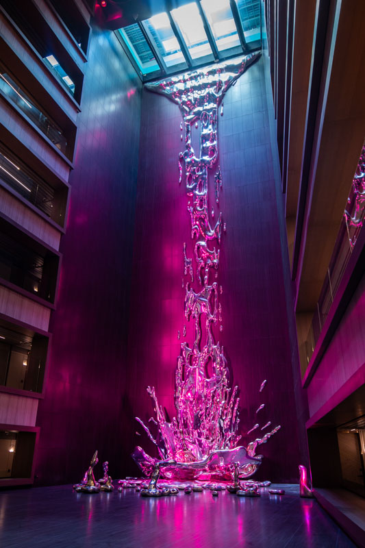 Así, gracias a sus superficies de aluminio pulido con efecto espejo, las piezas de Iturrióz reflejan el cielo, los jardines y a los propios visitantes, convirtiendo a cada espectador en parte de la obra.