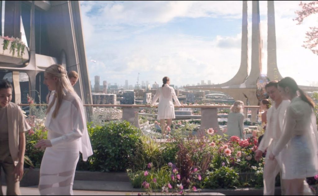 Una de esas urbes, que no es una metrópolis sino un complejo, sirvió como set de filmación para varias escenas de Un mundo feliz, que es la Ciudad de las Artes y las Ciencias de Valencia, diseñada por Santiago Calatrava.