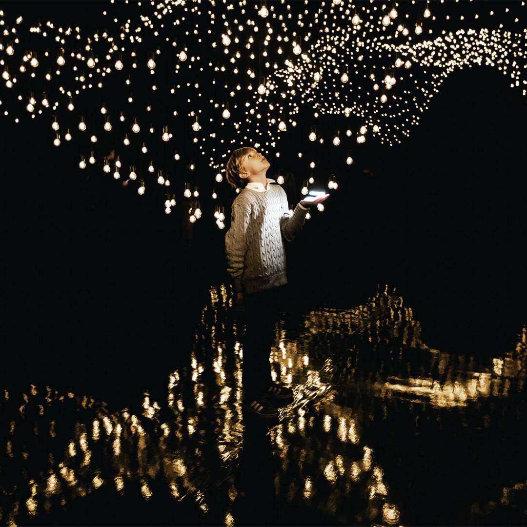 Completan la exposición, entre otras, las instalaciones de Hyperstudio y sus propuestas de viajes sensoriales que desafían nuestra percepción del lugar que ocupamos en el universo, ya sea recreando las estrellas fugaces de una Noche de San Lorenzo, dando vida a un torbellino hipnótico en Invisible Ballet o sumergiéndonos en Hyperstellar en una piscina de bolas negras sobre las que se proyectan las maravillas cósmicas.