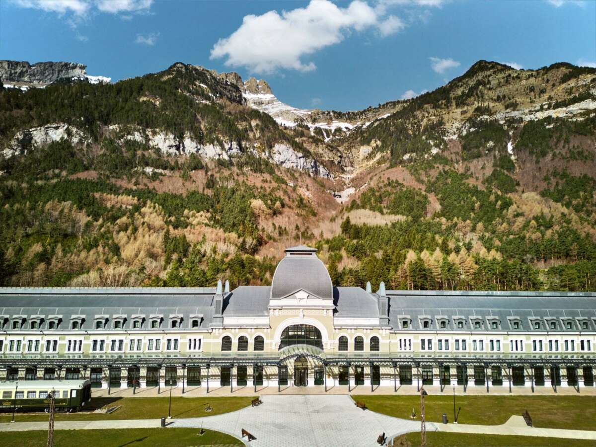 El lugar que hoy ocupa Canfranc Estación, operado por el grupo hotelero Barceló bajo su marca premium Royal Hideaway Hotel es, sin duda, el sitio “más singular y más intervenido por el ser humano que hay en todo el Pirineo”.