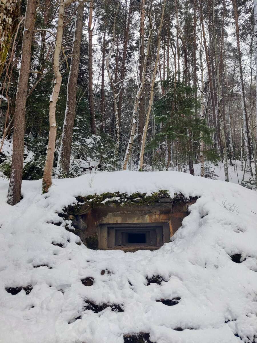 Como contención a una hipotética invasión por parte de los aliados, la Línea P, construida entre 1944 y 1948, se componía teóricamente de unos 10.000 búnkeres, de los que unos 6.000 fueron terminados, aunque nunca se usaron. Una docena de esos búnkeres, construidos para defender la Estación Internacional de Canfranc (el Sector 24 de la Línea P), pueden verse aún camuflados en los alrededores, vestigios de la historia que aún mira a Canfranc.