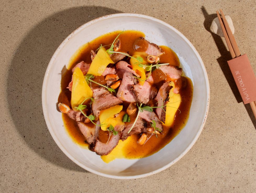 Entre sus platos, todos apetecibles, pulpo asado con mole rojo y causa limeña, taco de bogavante con salsa de pimiento asado y criolla de tomate-chipotle, berenjena braseada con salsa de miso sobre ensalada de kale y piñones, ceviche de pescado y marisco con espuma de tamarillo, tartar de atún con aliño de guayaba, aguacate y huevas de pescado y un delicioso cerdo ibérico glaseado con salsa agridulce y ensalada de papaya. Para terminar, triunfa el bombón de fresa con yogur, sorbete de fresas silvestres, gelée de fresa con coulis de chía y remolacha y, sin duda, la tarta cremosa de limones de Sóller con merengue y sorbete.