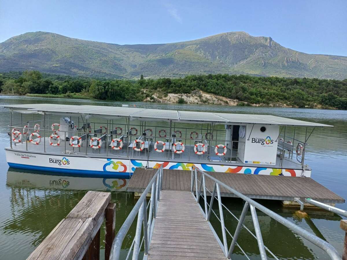 El murmullo del agua y el canto de los pájaros acompañan durante el recorrido en este barco electrosolar; un trayecto que, en realidad, pueden ser dos. De hecho, en función del nivel del agua del pantano, el barco hace una ruta u otra. El más impactante, sin duda, es el que pone rumbo al desfiladero del Ebro y permite navegar por el Valle de Tobalina entre cortados y cañones, bajo la atenta mirada buitres leonados y halcones peregrinos que anidan en los roquedos.