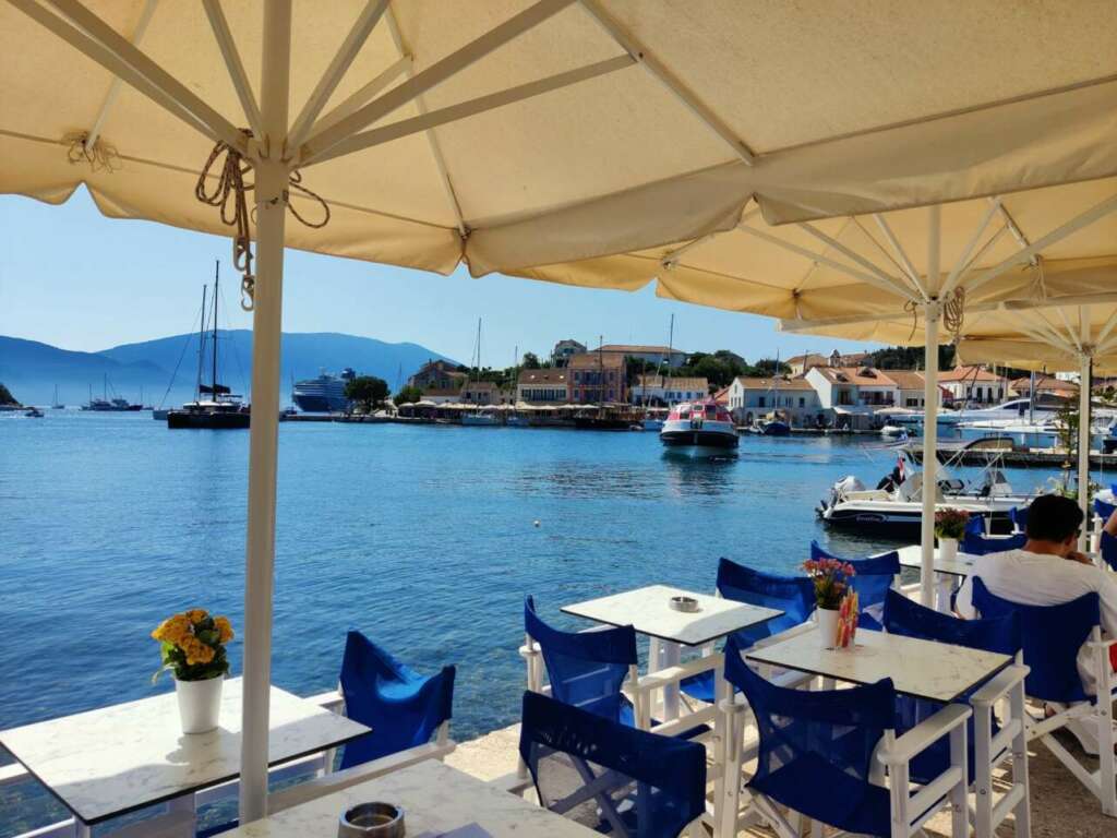 Las tabernas y restaurantes a pocos pasos del agua invitan a probar las especialidades locales como Tassia, el restaurante más antiguo de la localidad, que desde 1972 sirve recetas de Cefalonia y del resto de Grecia, Apagio, que amplía el abanico de sabores a todo el Mediterráneo, o el más refinado Fiskhardo, de alta cocina.