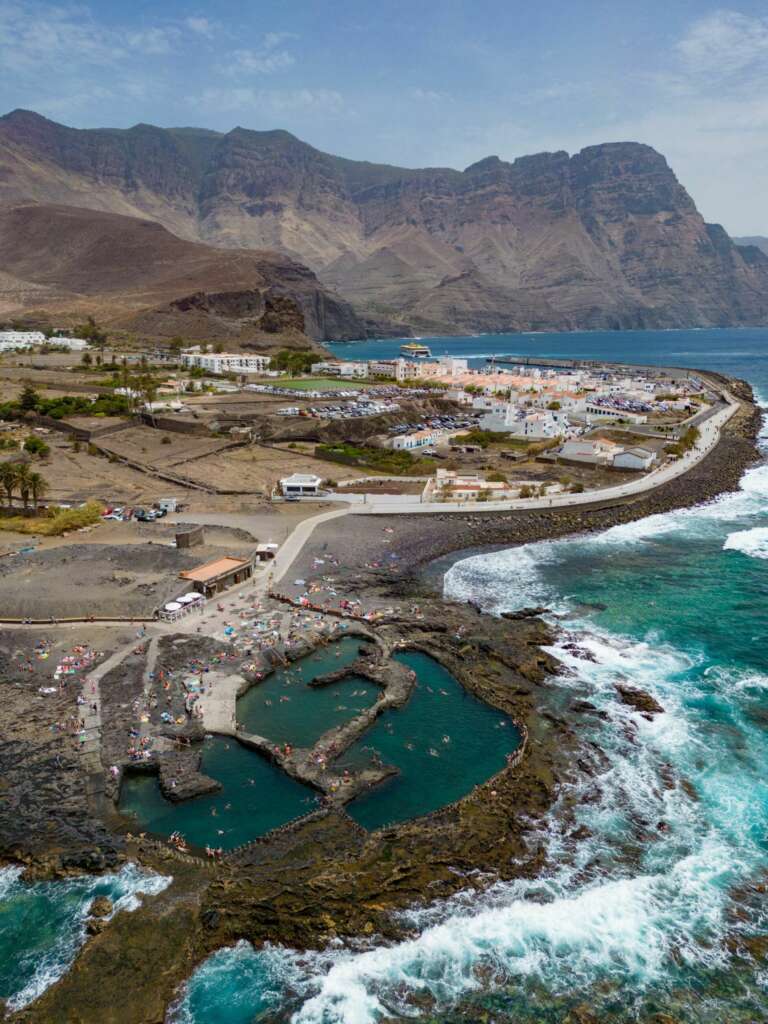 Ya en el pueblo, un casco urbano encalado y tranquilo invita a sumarse a la vida de ritmo pausado de la isla. En el Puerto de las Nieves, las fachadas blancas y azules miran al océano mientras los pescadores remiendan las redes y en los pequeños restaurantes es posible saborear un plato de pescado fresco frente al rumor de las olas.