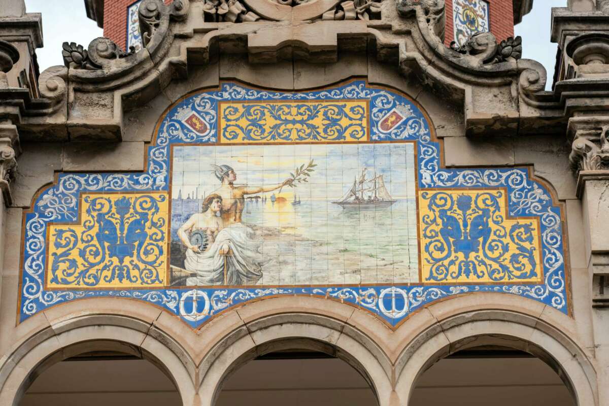 El rasgo más distintivo del edificio es, pese a todo, su iconografía marítima. Anclas, sogas, conchas, caballitos de mar o proas de barcos recorren fachadas e interiores como un relato simbólico continuo, al que se unen el emblema de la empresa familiar: un medallón con tres manos entrelazadas. No es un simple recurso decorativo, sino la traducción arquitectónica de la identidad de su propietario, un hombre cuya vida estuvo siempre ligada al mar.