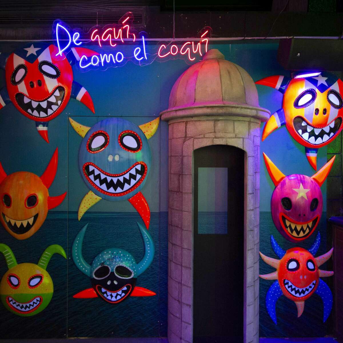 Este primer spot, convertido en el gran photocall del espacio, está enmarcado por máscaras de vejigantes, figuras tradicionales del folclore puertorriqueño reinterpretadas con neón e inspiradas en las fiestas de San Sebastián.