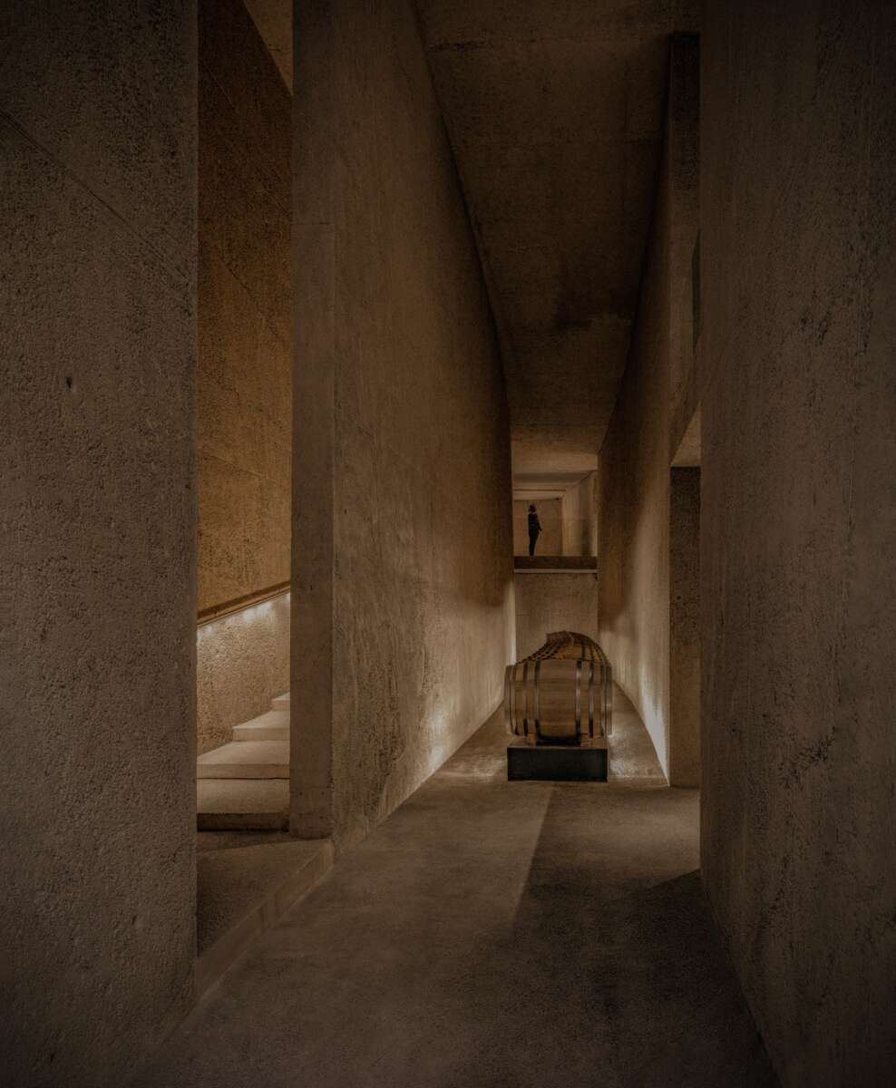Abierta a los visitantes, la bodega es todo un refugio enoturístico, un recorrido sensorial por pasarelas bajo una luz cenital, que conduce a salas de fermentación, crianza y un espacio casi místico llamado ‘el Templo’, donde se conciben sus vinos más especiales.