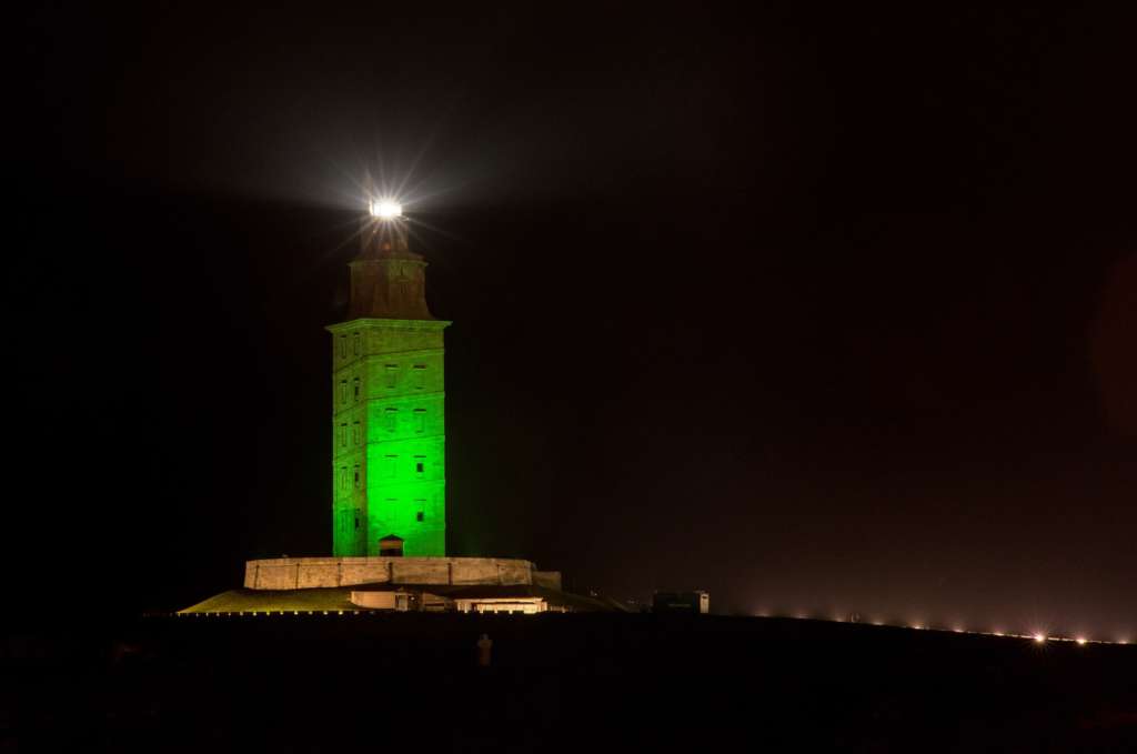 La Torre de Hércules de A Coruña también se teñirá de verde el Día de San Patricio, uniéndose así, junto con la Cibeles, a la lista de monumentos internacionales que se iluminan de verde para celebrar San Patricio.