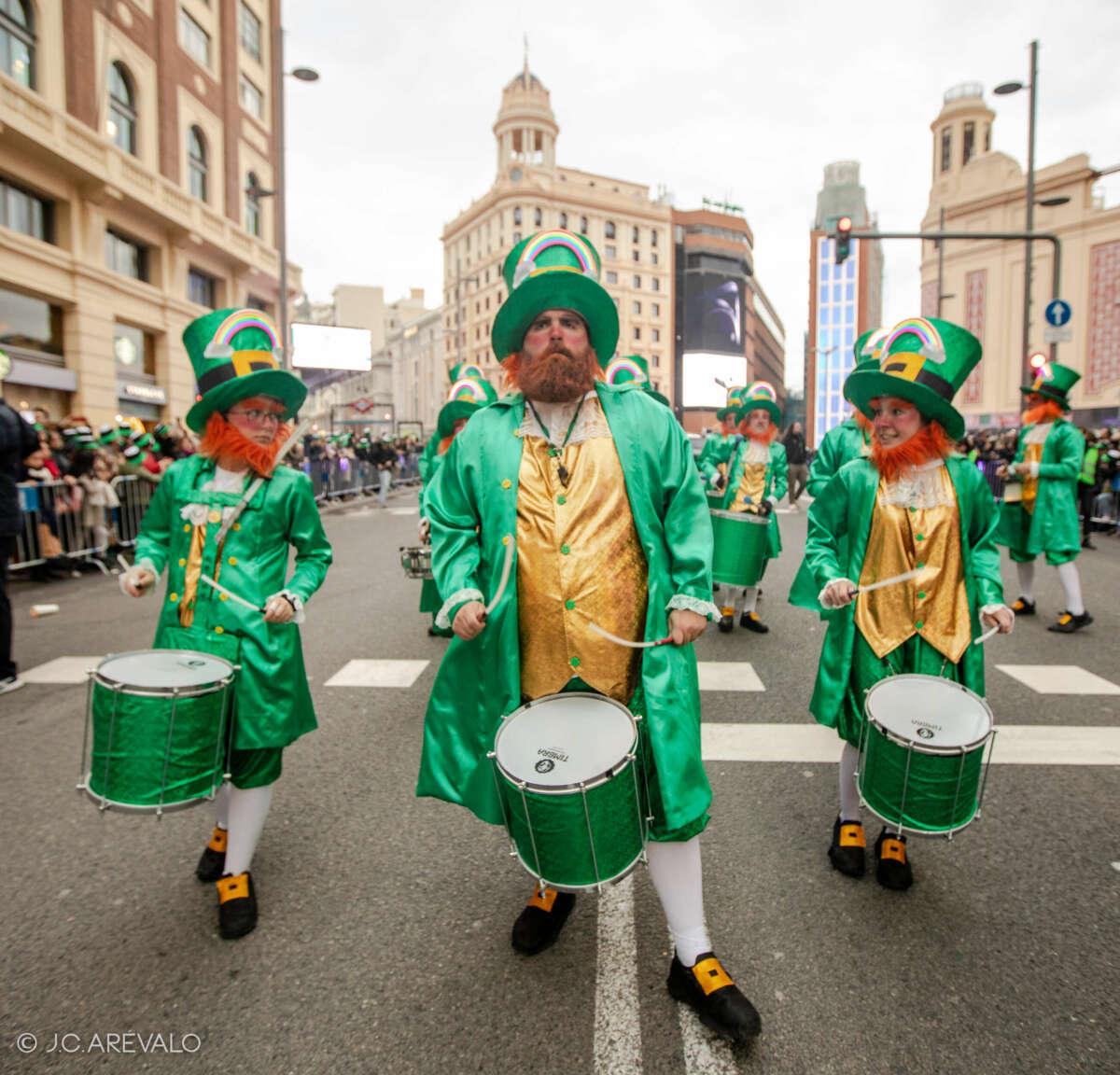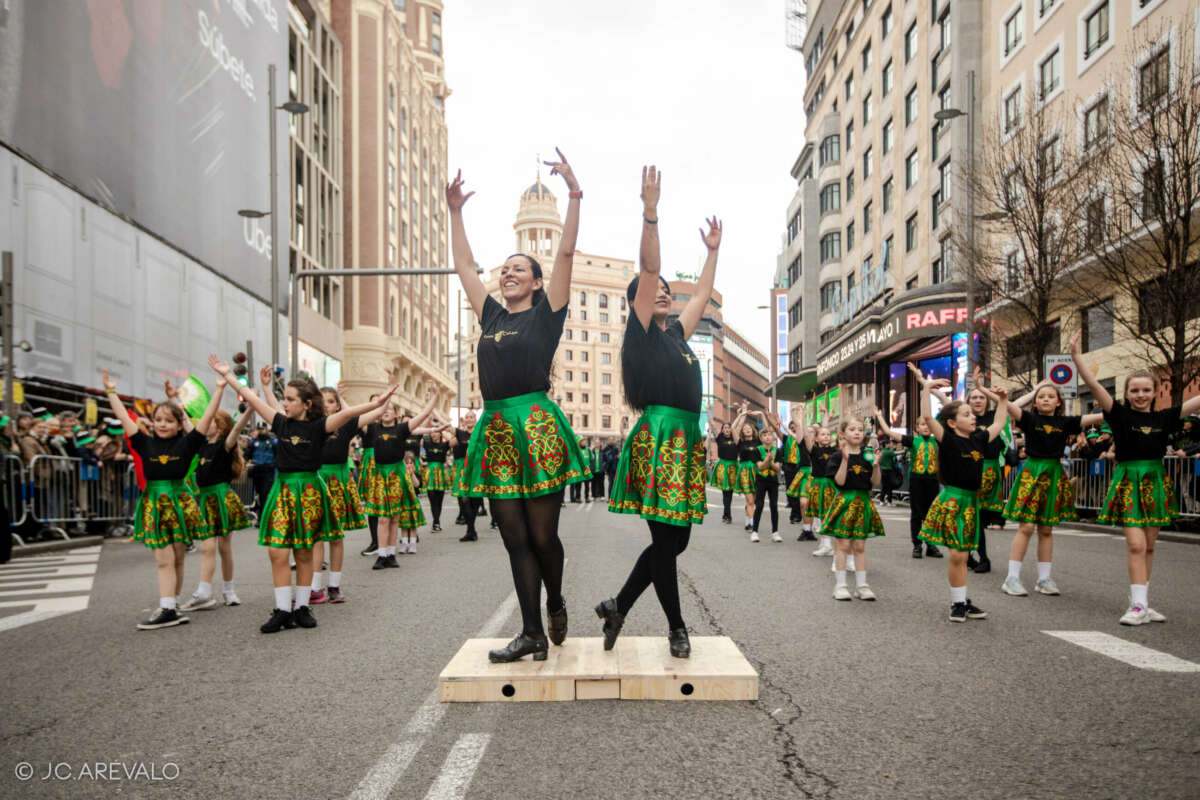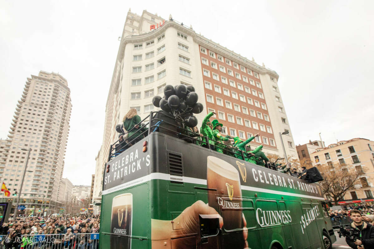 Por supuesto, también a Madrid, donde desde hace ya tres años San Patricio se extiende a toda una semana llena de gaiteros y conciertos, danza, deportes gaélicos, actividades culturales, monumentos iluminados de verde, mucha fiesta y, por supuesto, un desfile multitudinario -se esperan más de 700 gaiteros y 1200 participantes- que llena de verde la Gran Vía madrileña.