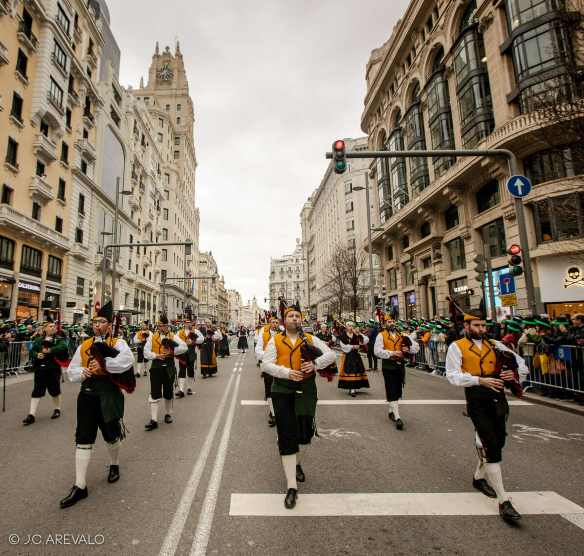 Iniciativa del músico Bras Rodrigo y de la Fundación Banda de Gaitas de Corvera con la colaboración de Turismo de Irlanda y la Embajada de Irlanda y el patrocinio de la mítica firma cervecera Guinness, arrancará en el edificio Metrópolis y discurrirá por la Gran Vía hasta llegar a Plaza de España.