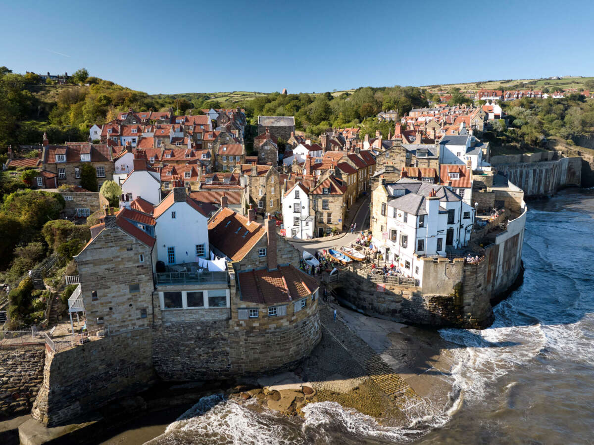 Muy cerca, Robin Hood’s Bay es uno de esos lugares que parecen sacados de una novela. Sus casas se apiñan en una ladera empinada que desciende hasta el mar, conectadas por callejuelas estrechas donde resuenan historias pasadas de pescadores y contrabandistas.
