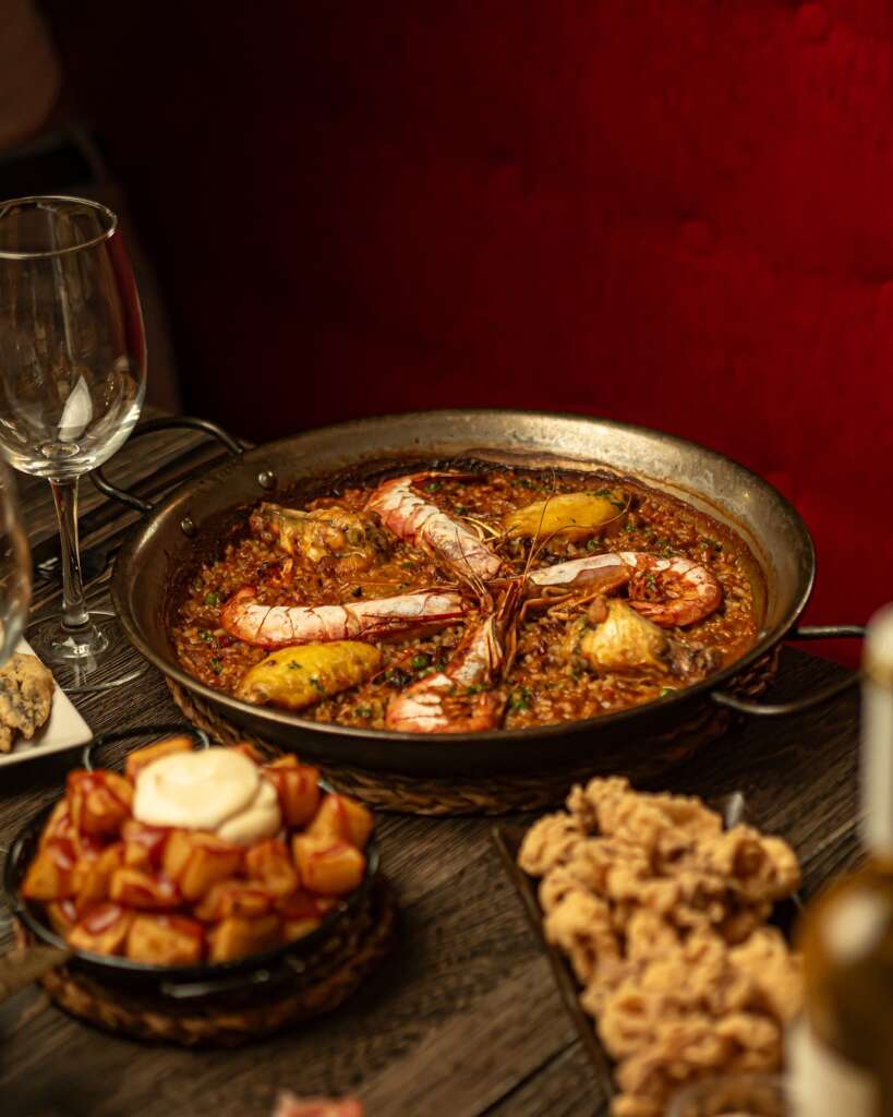 Siempre con el arroz bomba como hilo conductor, se puede optar por la de mariscos con bogavante, la negra de marisco, la del señorito ‘pelado’ (con gambitas y cigalas), la de mariscos con mejillones, la de gambas y pollo, la de mariscos y carne, la de carne sola y la de verduras. Y no vengan con eso de “en mi pueblo no se les ocurriría poner chorizo a una paella”, acá se viene a disfrutar y pasarlo bien.