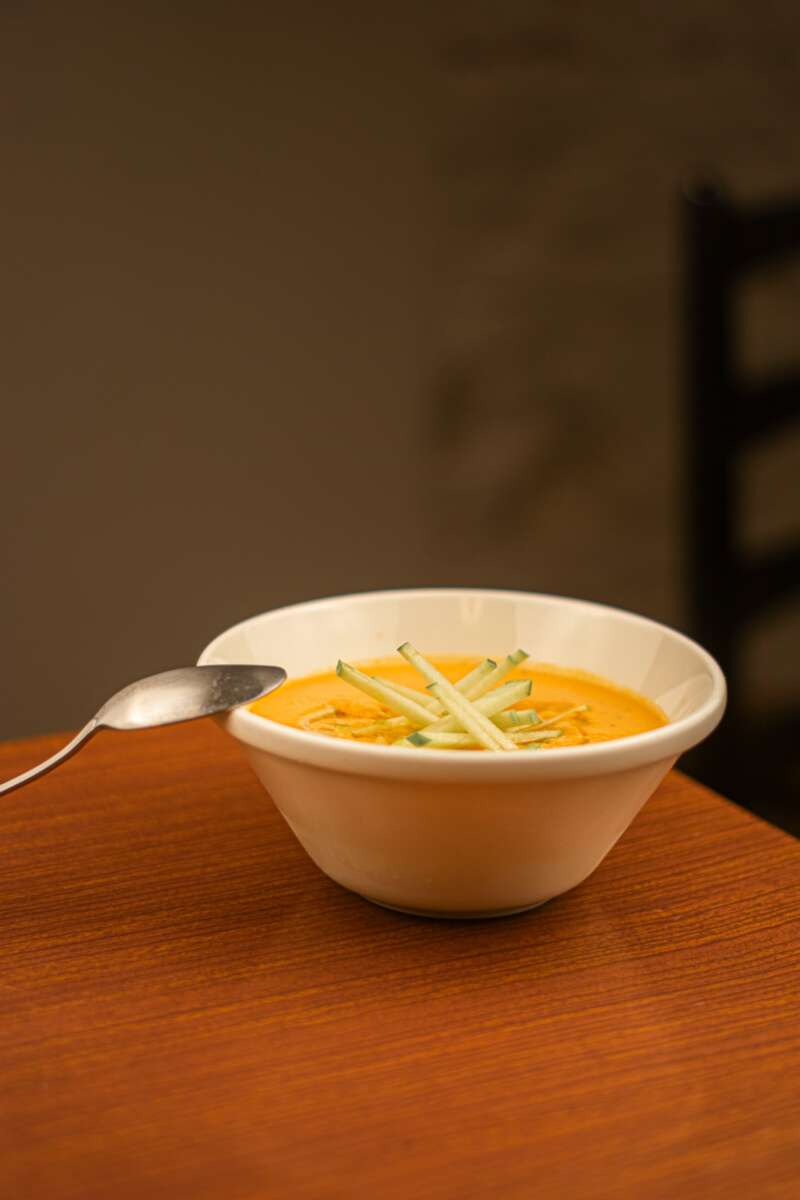 En otras visitas, se puede probar los Mumbai’s ravioli (en que la ricota en realidad es almendra, con bechamel al curry y un daal de lentejas) o el kiss me ramen V3, en que los noodles caseros están bañados por un caldo cremoso a base de dashi y leche de coco, con tofu y alga nori, entre otros ingredientes.