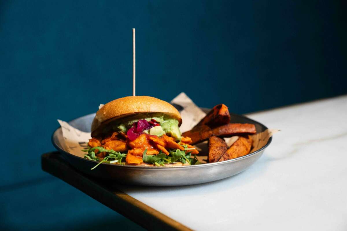 La clave de Vrutal también está en desmontar estereotipos. Aquí no hay raciones tímidas ni platos que pidan disculpas. Las hamburguesas son grandes, complejas y bien pensadas. Cada una lleva no menos de cinco ingredientes, y todas buscan ese equilibrio entre sabor, textura y memoria gustativa. La French Kiss es probablemente la más icónica: proteína de guisantes, foie vegano casero, mayonesa de trufa, manzana y cebollas caramelizadas. La Blind Date juega la carta de la hamburguesa clásica bien ejecutada, mientras que otras, como la Caesar Portobello o la Banh Mi, se permiten tener identidad propia sin necesidad de imitar nada.