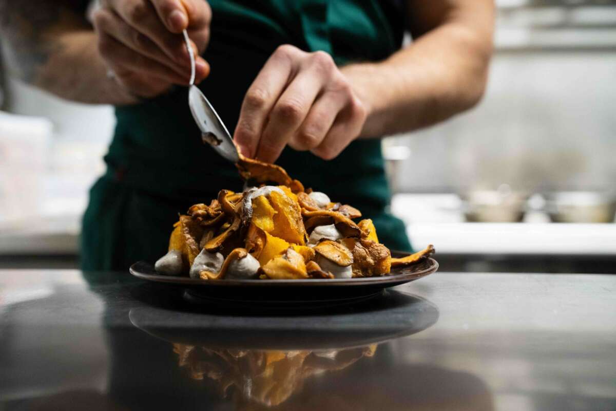 La cocina de Pötstot, más que reinventar, busca reproducir con fidelidad emocional el recetario popular catalán y mediterráneo sin recurrir a proteínas animales ni a gluten. Canelones, croquetas, tortillas, arroces, ensaladillas… el repertorio es reconocible, cercano, casi doméstico, pero ejecutado con una técnica afinada y un conocimiento profundo del producto vegetal.
