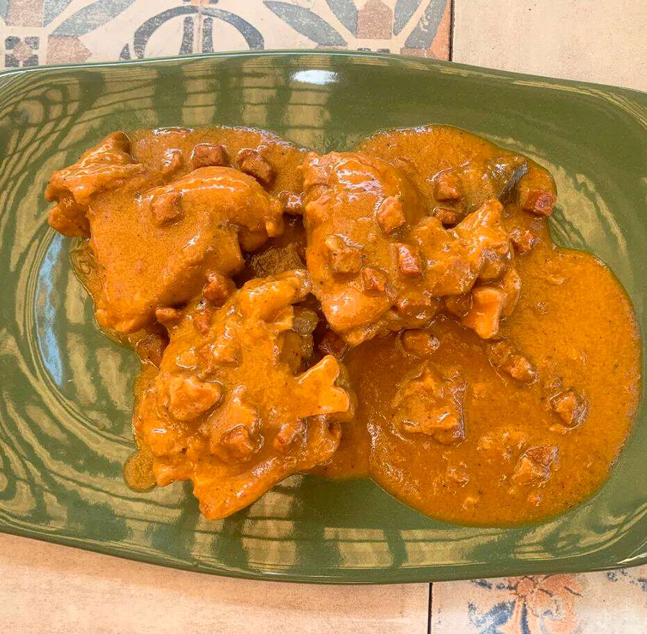 De entre todos sus ofrecimientos queremos invitarles a que prueben su cordero en caldereta, gustosa receta extremeña que cuenta entre sus ingredientes con: carne de cordero con hueso, zanahoria, cebolla, puerro, apio, ajo, especias, tomate, vino blanco, aceite de oliva virgen extra, pimiento rojo, agua, sal y plantas aromáticas.