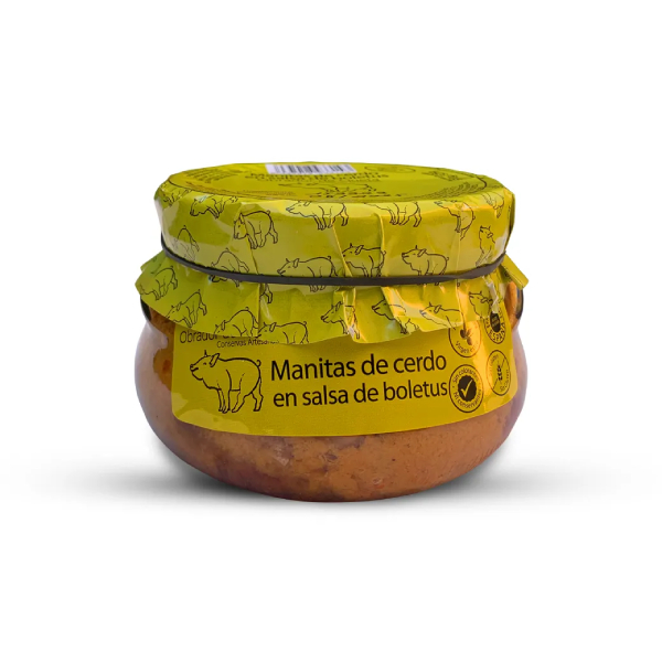 El resultado es un llamativo guiso en el que la gelatina de las manitas está muy presente, y que gustará mucho a los que buscan los grandes sabores, ya que los boletus confieren al conjunto un gusto y una textura muy destacable. Precio frasco de vidrio con un peso aprox. de 610 g: 9,50€