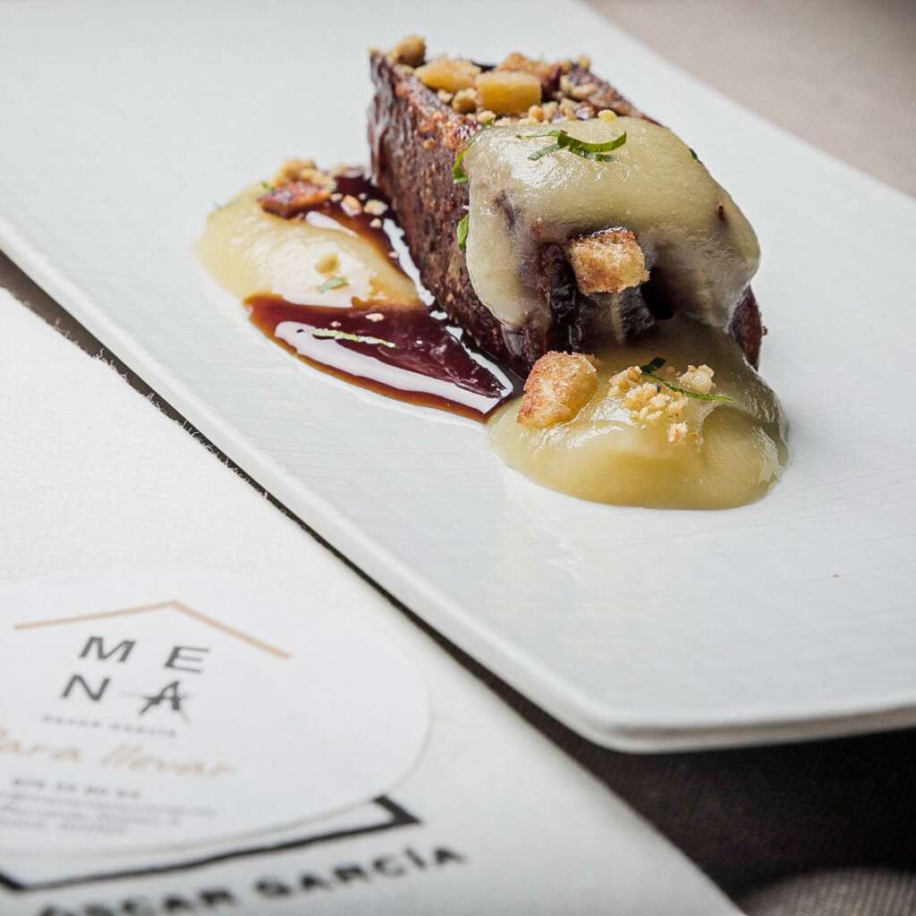 Otra versión de Óscar García es la que se descubre en Mena (Plaza de Bernando Robles, 5), en concreto una más desenfadada e informal, que toma forma en un gastrobar alojado en los bajos del hotel boutique Ábaster, frente al mercado municipal.