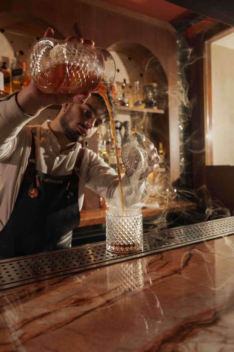 Su decoración es un maridaje de tradición y modernidad: un espacio que, de noche, transmite una elegancia discreta con sus luces tenues, pero que de día se llena de luz gracias a sus grandes ventanales. Aunque, salvo que el clima lo impida, casi todo el mundo sale a la terraza con alguno de sus cócteles —clásicos o de autor— o con uno de sus vermuts.