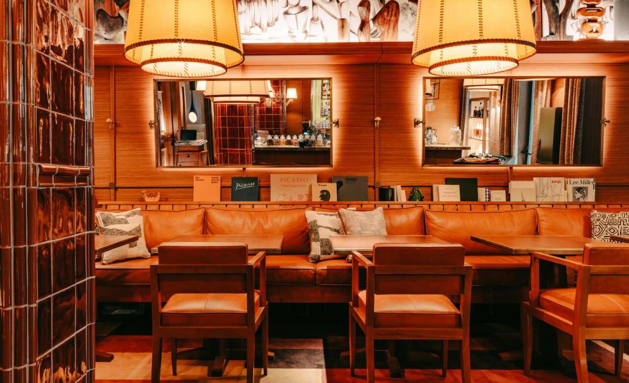 De nuevo con Madrid como inspiración, el restaurante se diseñó como “un homenaje a la estética de los grandes cafés históricos de Madrid del pasado siglo”, explica Ramallo sobre una sala de atmósfera cálida y elegante.