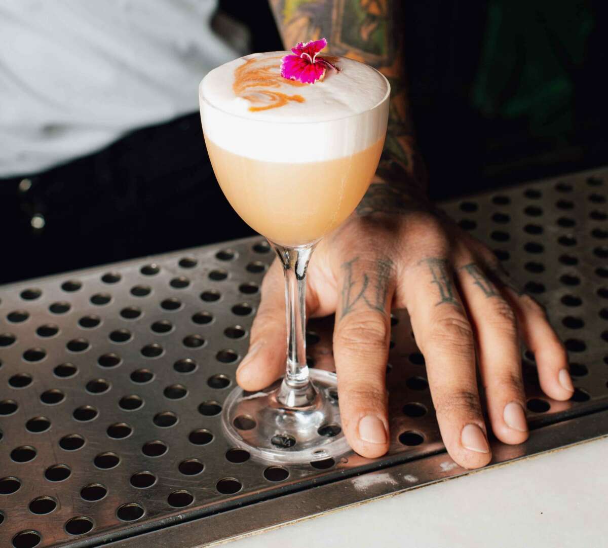 Ese homenaje al pasado reciente se refleja, también, en los divertidos nombres de los cócteles: Tangerine Dream, Pink Fluyd, Basil Instinct, El Zorro, Finish him! o Golden Boy. Todos ellos son creaciones propias o relectura de clásicos, como el ’90 Spritz (con June Pera, cordial de hibisco, cava y espuma fruta de la pasión) y el Belluci’s (Licor de bergamota, amaro de ruibarbo, cítrico, soda de pomelo y oliva); con quienes nos dieron la bienvenida.
