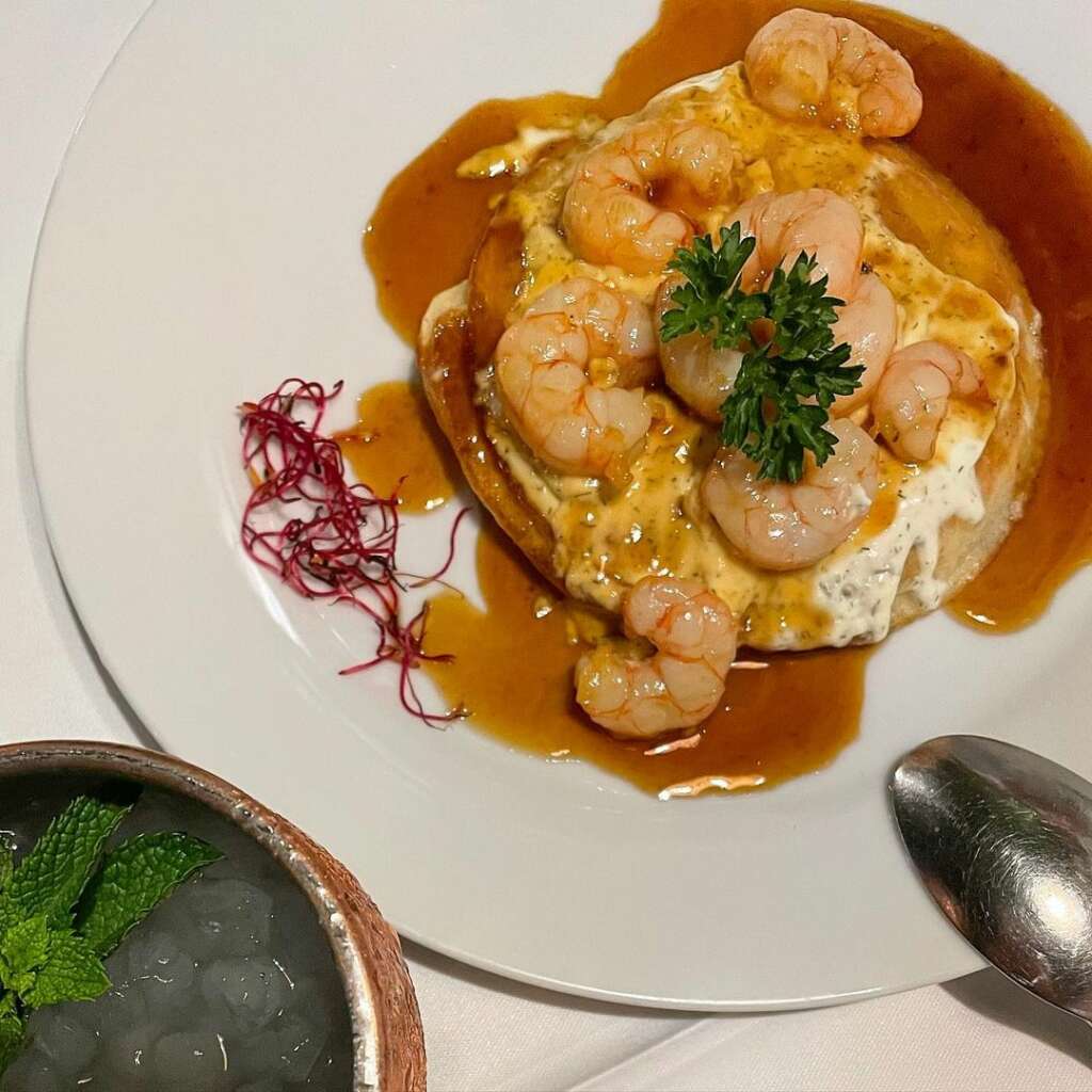 Elaboran una cocina de cuidada presentación, en platos tan arrebatadores como la burrata con gambas, el bacalao a la mediterránea, el ravioli con butifarra y patatas con masa de remolacha o la mini berenjena a la caprese.