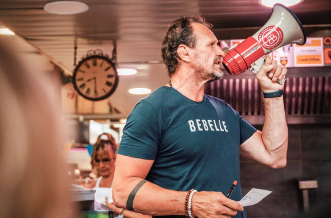 Para no quedarse con las ganas, se sugiere visitar la parada más divertida de todas: Chez Bébelle. Creado por el ex jugador de rugby Gilles Belzons, es difícil conseguir sitio, y menos cuando hay partido de este deporte en Narbone. Pero si hay suerte, se puede ver uno de los momentos más esperados: cada tanto Belzons o alguno de sus empleados toma un megáfono y pide un corte de carne a uno de los locales contiguos: lo envuelven en papel y lo arrojan entre las cabezas como un balón, que es atrapado al vuelo por los cocineros.