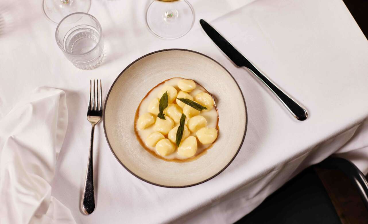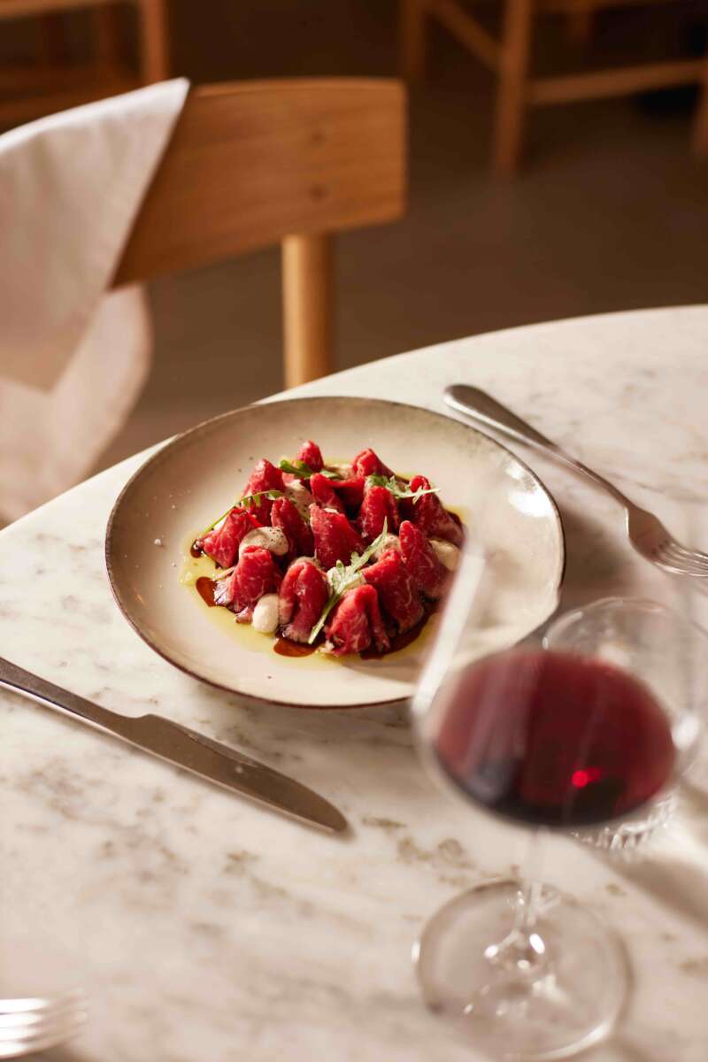 La carta (precio medio, 40€ a 50€) es breve, con las opciones justas para no estar mareando al cliente de entrada. Hablamos que hay una docena de aperitivos (entre ellos, las croquetas de osobuco y la gilda ‘en tres bocados’, además de tres tipos de caviar Benoît Osietra Imperial), el mismo número de entrantes, unos seis platos de pasta, otros tantos de carne, y un puñado de postres. Directo al grano.
