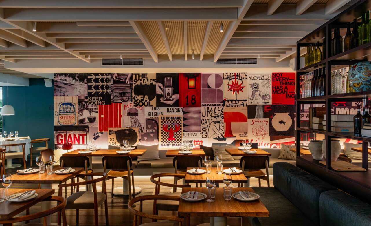 El colorido mural es uno de los rasgos más innovadores de la estética del restaurante Foto: Puerto Fuego.