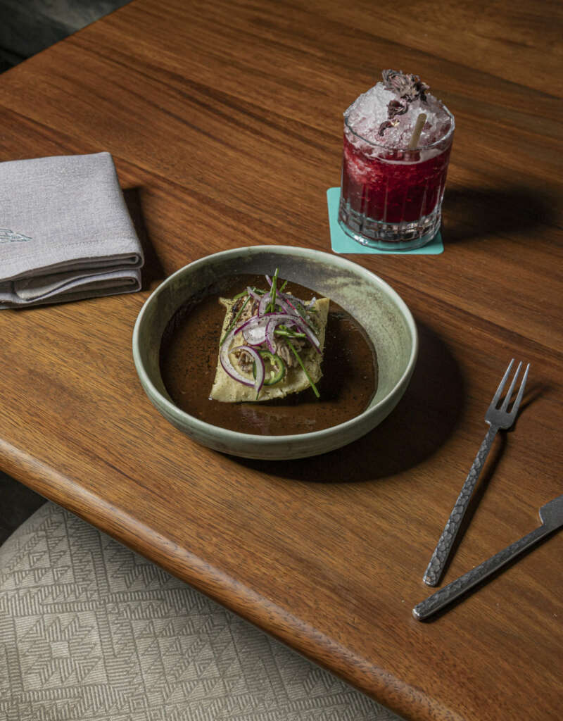 Muy bueno también el cóctel de camarón, una de esas entradas que resumen el espíritu fresco y festivo del litoral mexicano, y la salsa verde de tomate casera con taquitos de pollo: una mezcla simple, pero intensa, donde el sabor del maíz nixtamalizado se nota en cada bocado