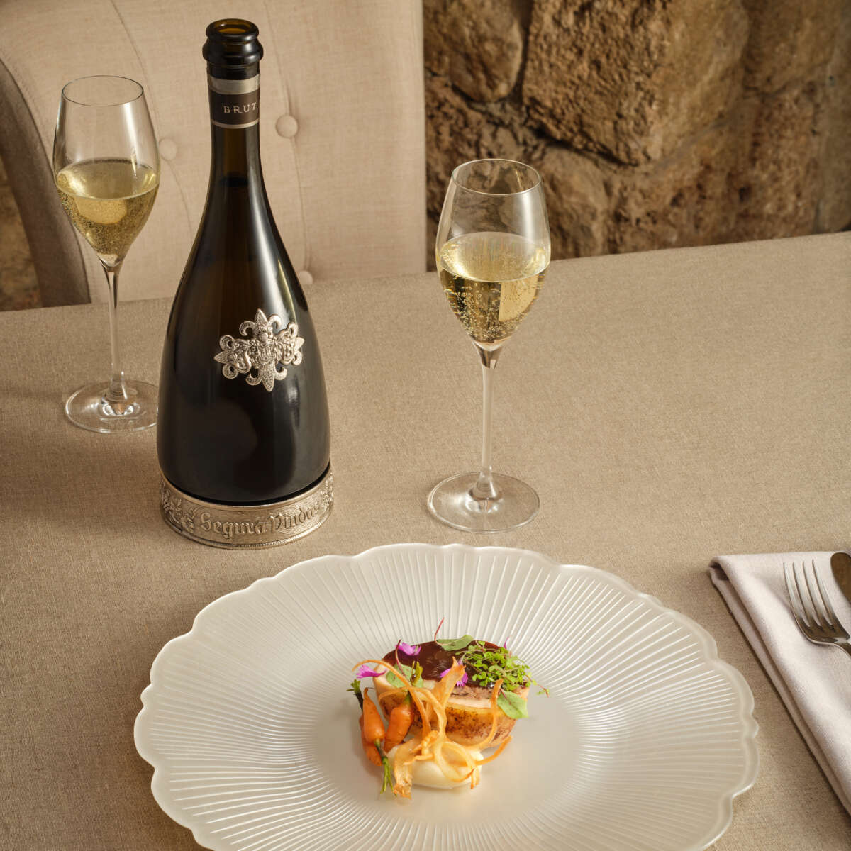 Gracias a su perfil gastronómico, este elegante espumoso combina con ostras, sopa de marisco, pollo rustido o una tabla de quesos curados, así como con platos más sofisticados con trufa, pescados blancos a la meunière o lomo de ciervo braseado.