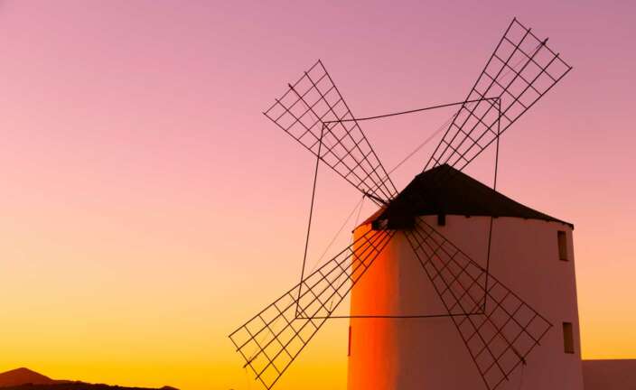 Los molinos de Fuerteventura recuerdan cómo durante siglos se aprovechó el viento para extraer agua y moler cereales, gigantes silenciosos que se descubren en esta ruta