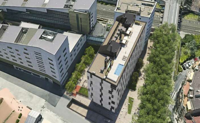 El complejo cuenta con 180 apartamentos sostenibles e ‘inteligentes’. Bautizado como Kora Green City, operará como modelo Co-living y explota alojamientos flexibles de corta, media y larga estancia. Su ‘naming’ es un guiño al décimo aniversario de la capital vasca como Green Capital