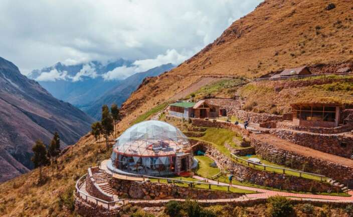 StarDome Peru ofrece la experiencia de pasar la noche en un gigantesco domo transparente en el Valle Sagrado de los Incas, arrullados por la belleza escarpada de los Andes y el Machu Picchu