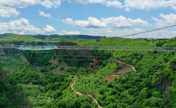 Con un bar de cristal suspendido en el aire: así es el fantástico Puente Diamante de Georgia