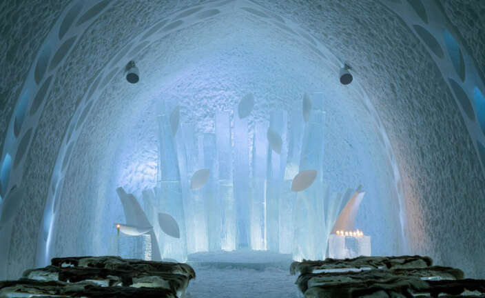 En Suecia, cada año el Icehotel se derrite y vuelve a ser construido, donde 24 artistas de todo el planeta aplican su talento para decorar las habitaciones