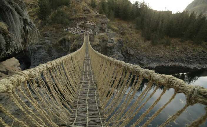 Cada año desde la época de la civilización incaica, el puente colgante de Q'eswachaka sobre el río Apurímac en Perú es destruido y reemplazado por uno nuevo, que se teje a mano únicamente con fibras naturales