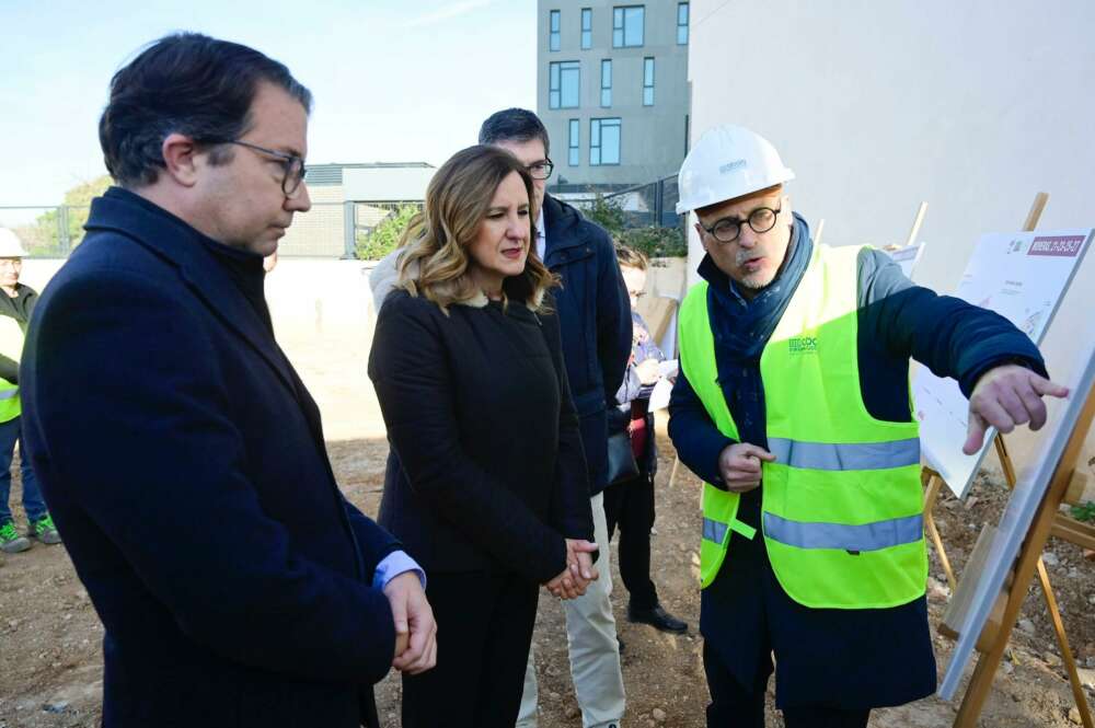 La alcaldesa de Valencia, María José Catalá, visita las obras de construcción de un edificio de viviendas de alquiler asequible en Moreras, Valencia.