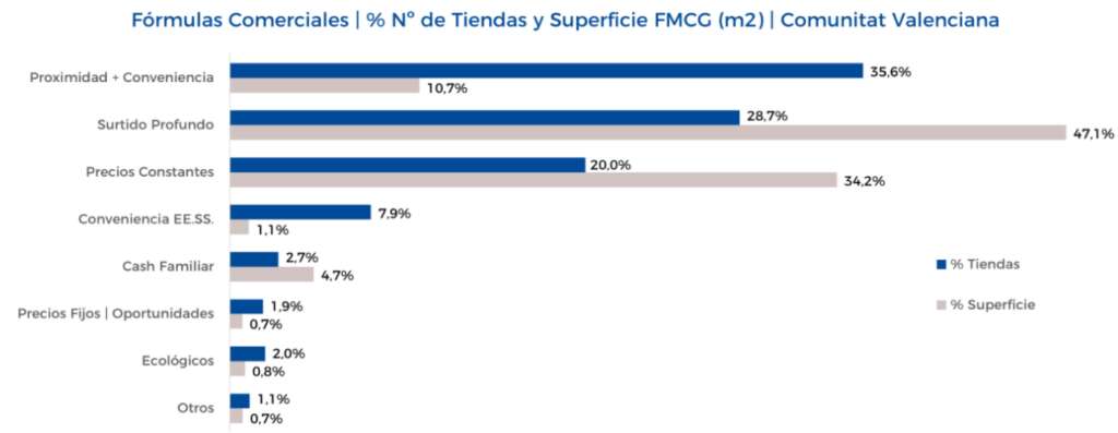 La fórmula comercial más extendida en la Comunitat Valenciana es precisamente la que une proximidad y conveniencia, ya que el 35,6% de las tiendas de la comunidad autónoma responden a este modelo, por delante de otras opciones.